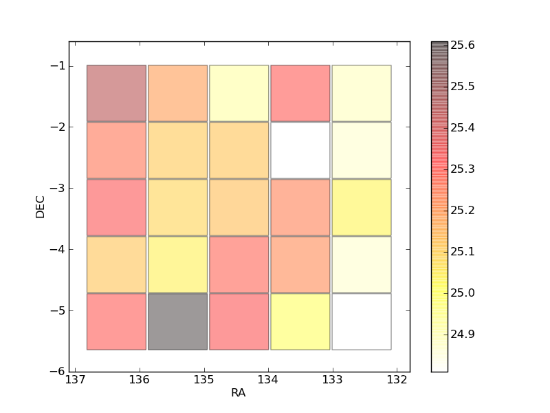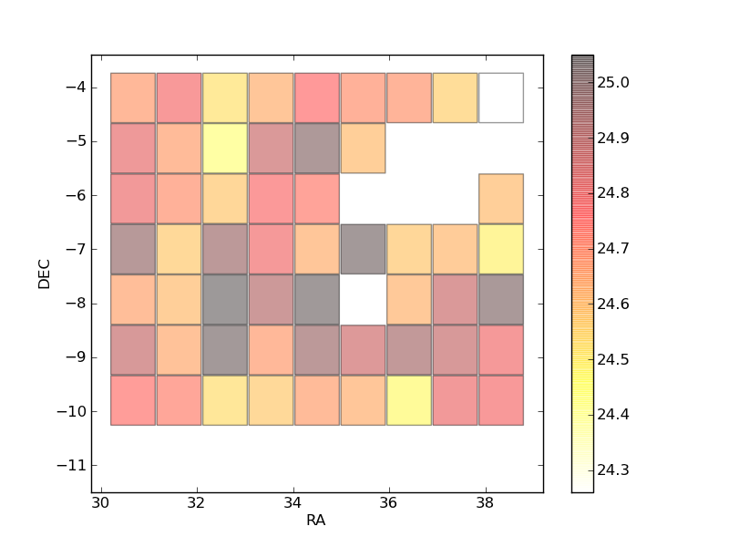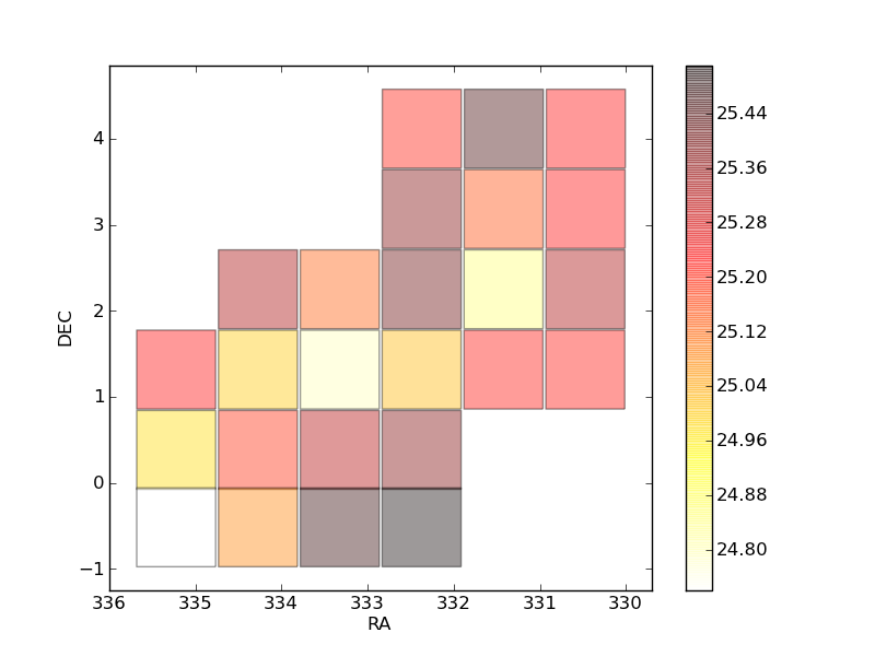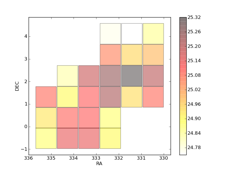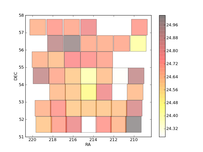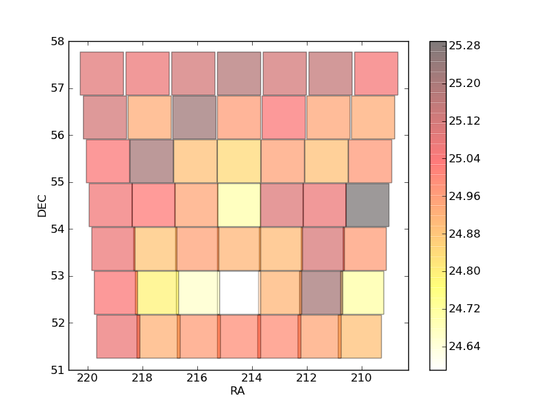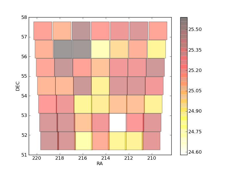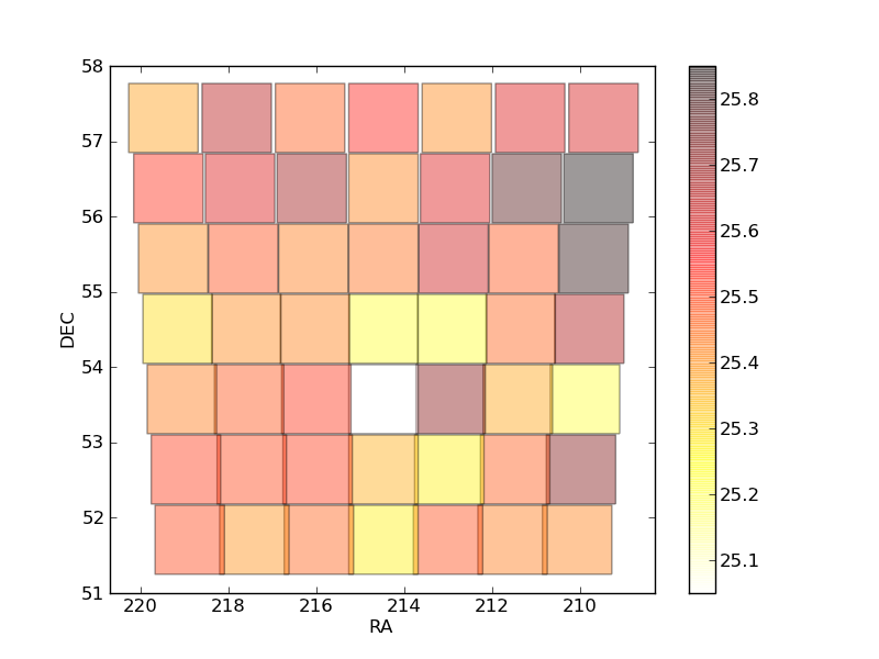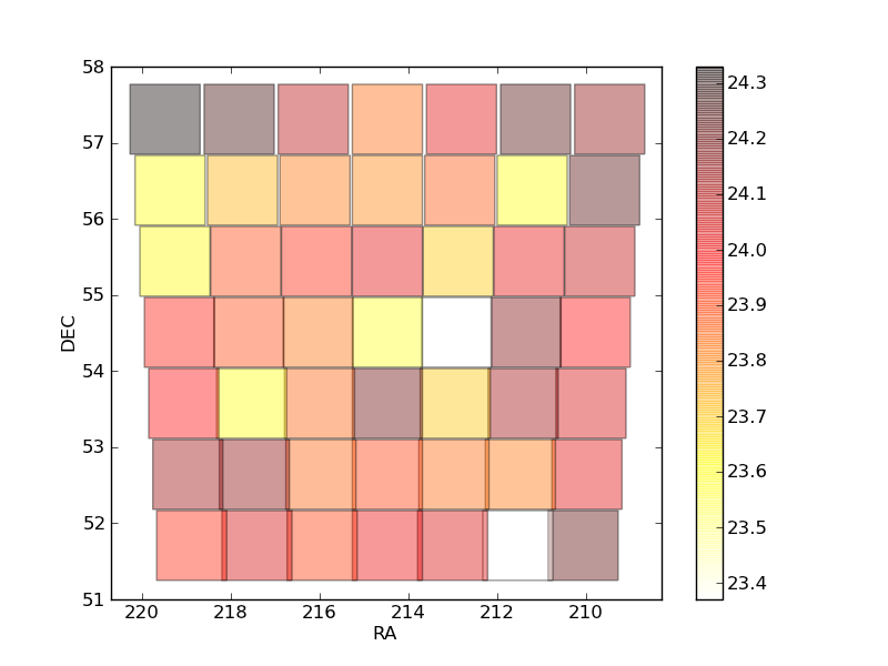 Figure 32 shows a series of completeness maps over the entire Wide fields. The maps are produced for each Wide field and for each filter.