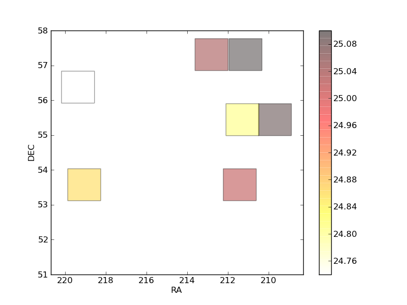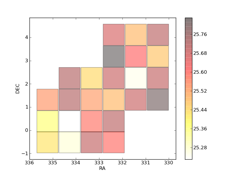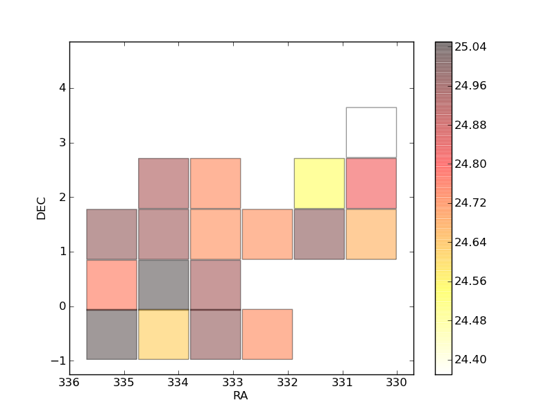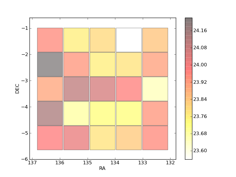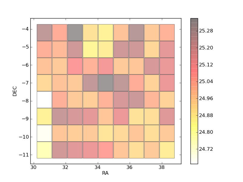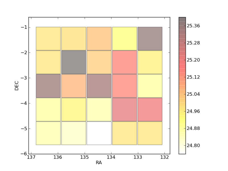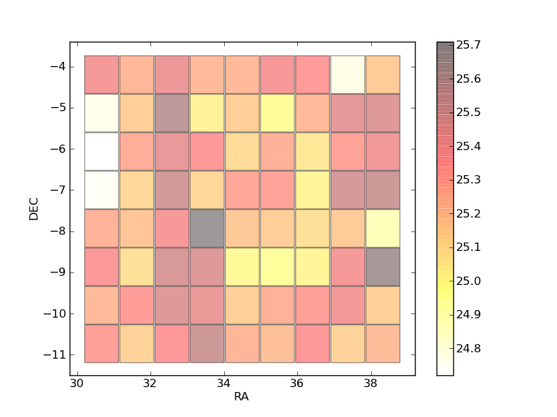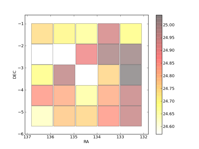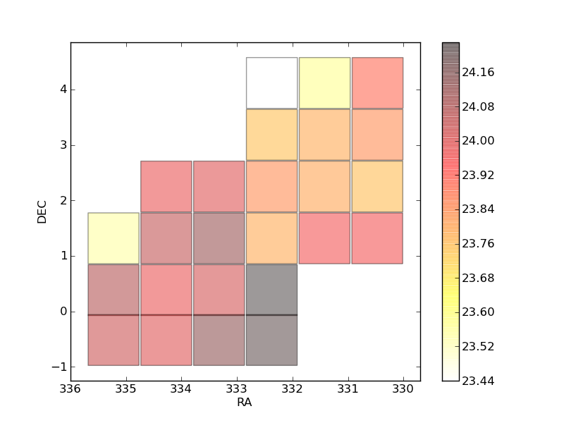 Figure 32 shows a series of completeness maps over the entire Wide fields. The maps are produced for each Wide field and for each filter.